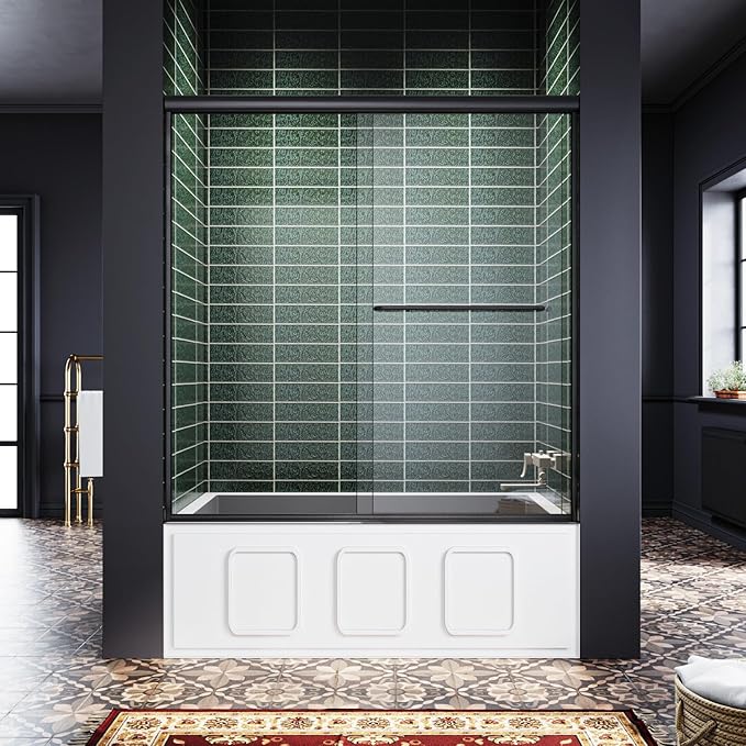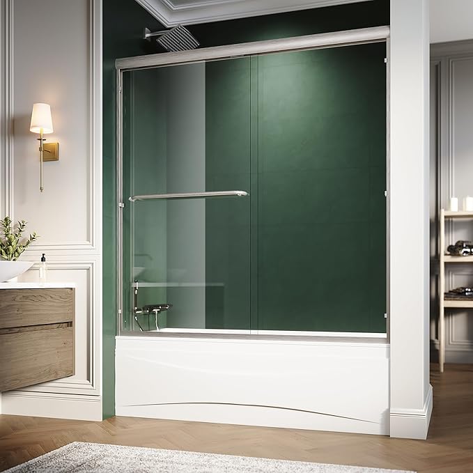 Semi-Frameless Bypass Sliding Tub Glass Door - 58.5-60"W x57 3/8"H, 1/4" Clear Tempered Glass, Brushed Nickel